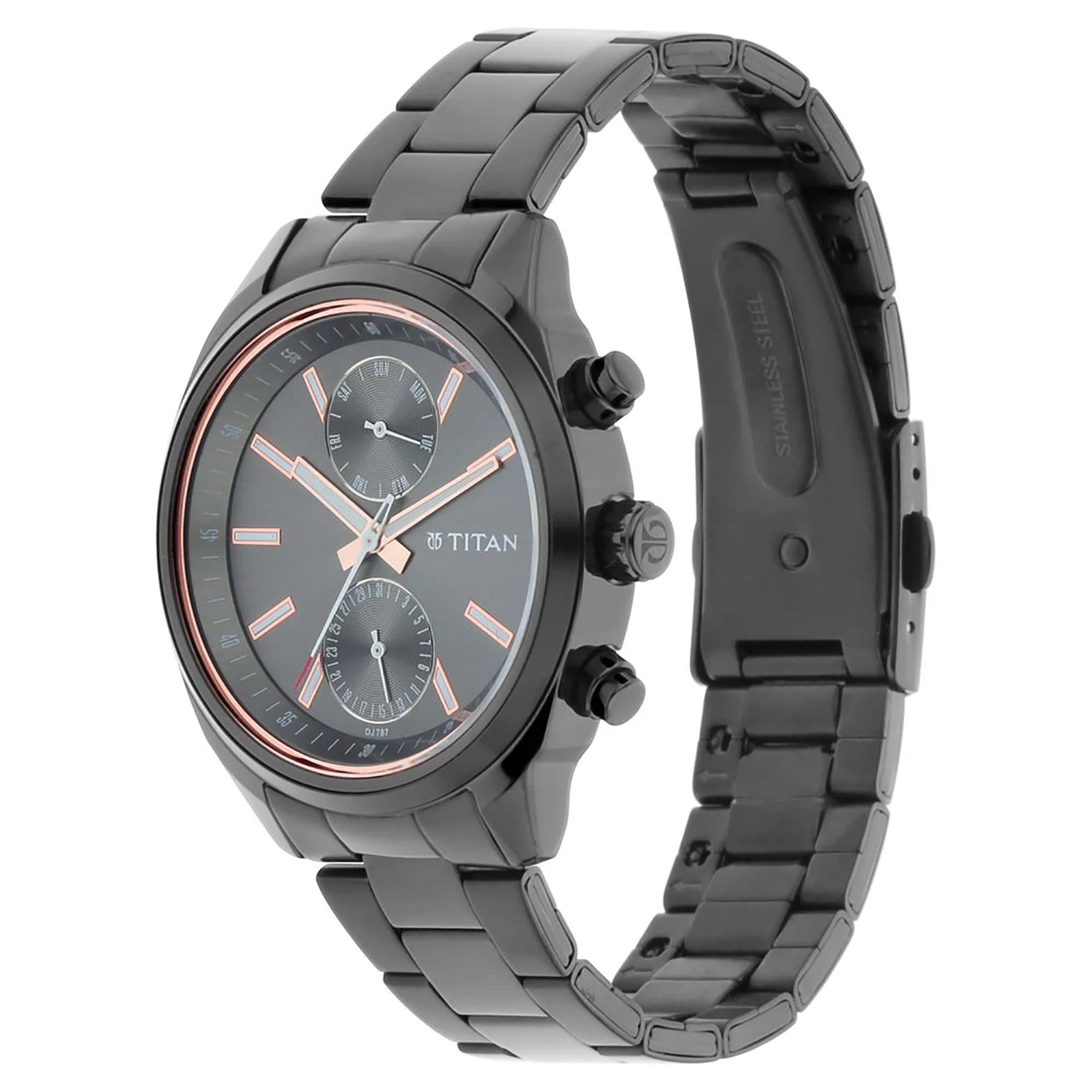 Titan Quartz Multifunction Anthracite Dial Stainless Steel Strap Watch for Men